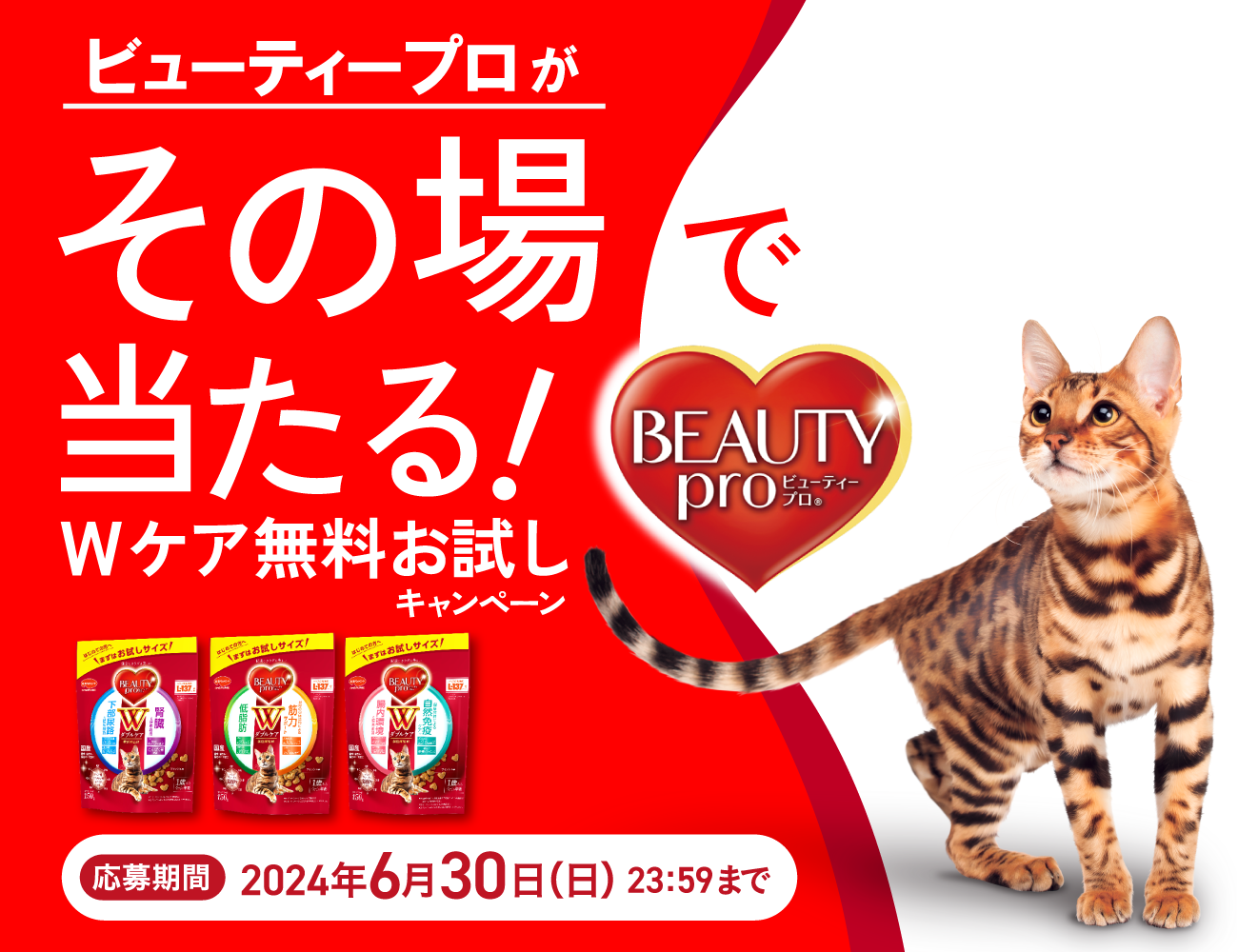 お知らせ その場で当たる!Wケア無料お試しキャンペーン[終了しました] 2024.05.01 ◾️キャンペーン期間 2024年5月1日〜2024年6月30日23:59※詳細は、キャンペーンサイト(https://bp-2024-05cp.com/)をご確認ください。
