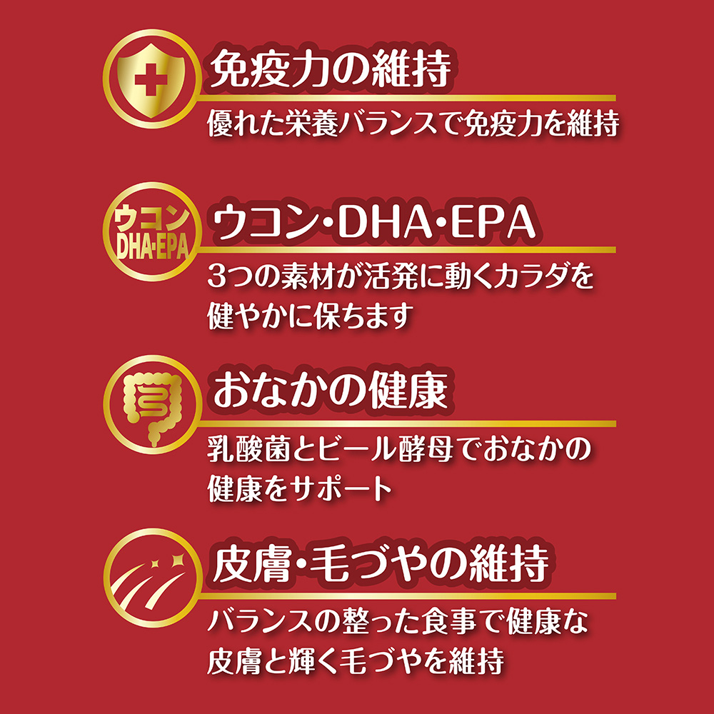 ウコン・DHA配合で元気で活発に動き回るカラダをサポート。