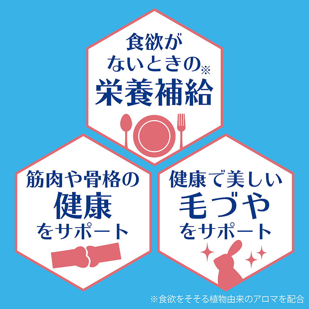 食欲の落ちる時期、換毛期、シニア期の栄養補給にもおすすめ。