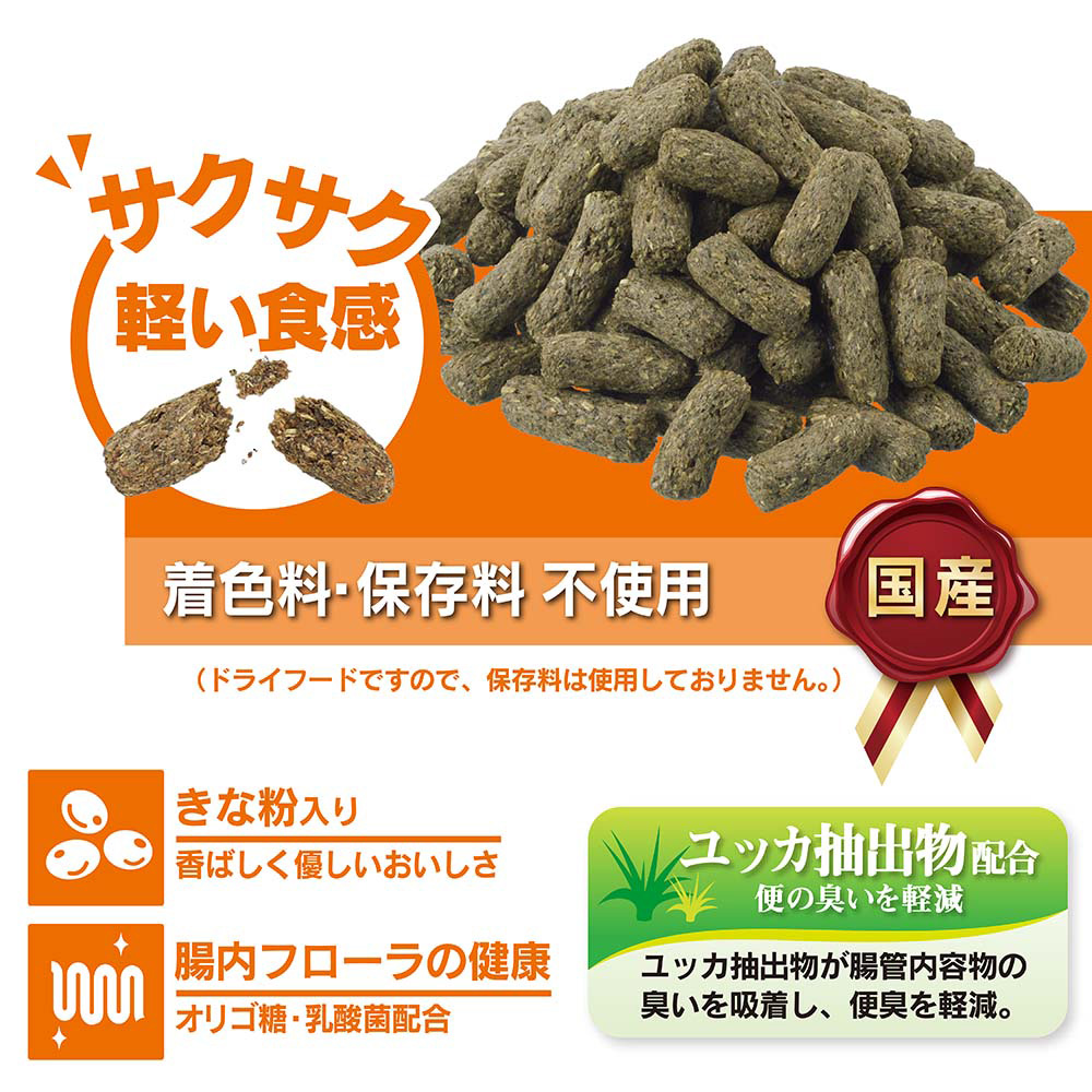 うさぎの健康を考えたベーシックメニュー。大切なうさぎのすこやかな毎日を願い、必要な栄養素をバランス良く配合。牧草をたっぷりと使用した、おいしくてヘルシーなベーシックフードです。